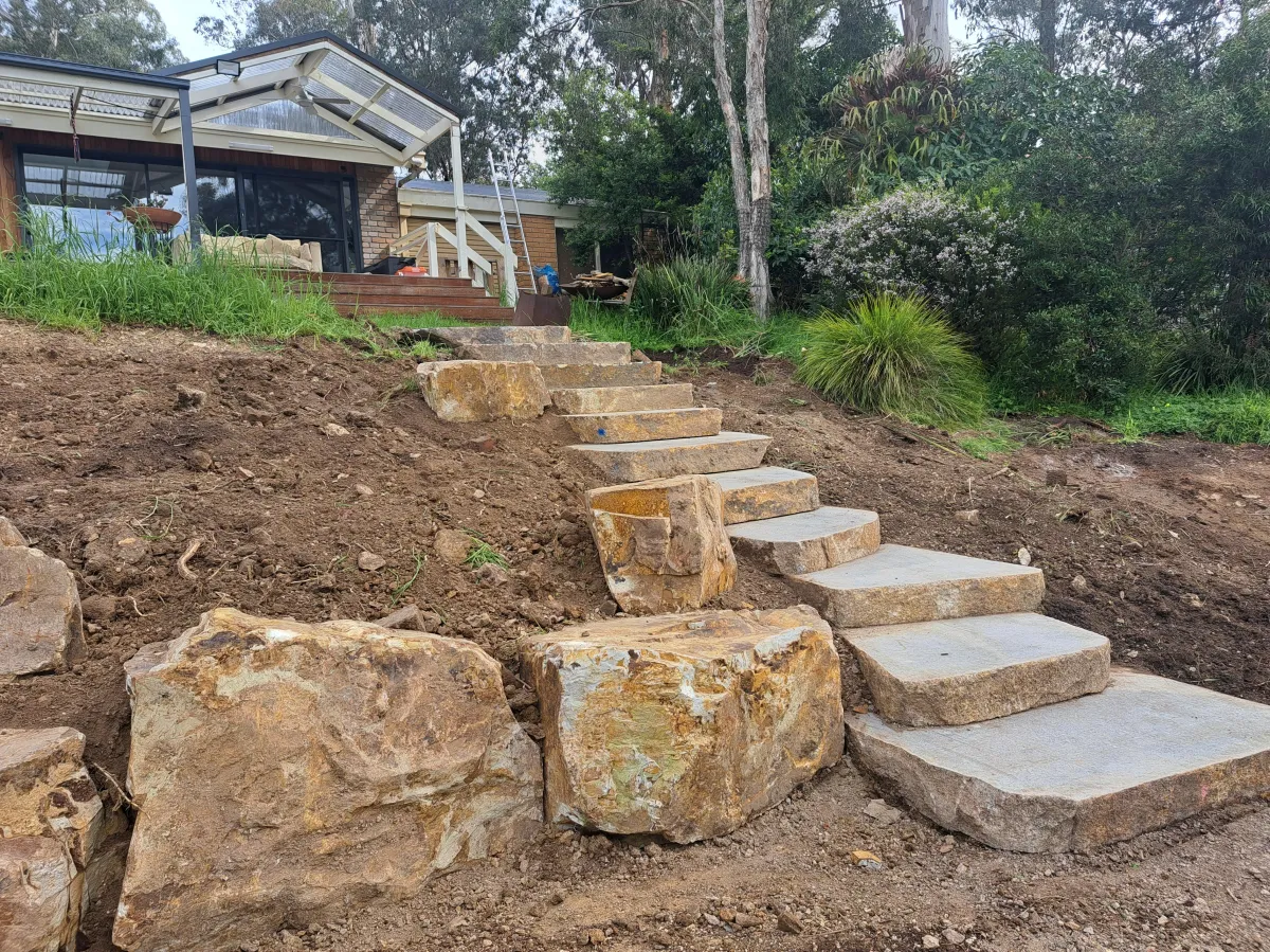 Our Sawn Stone staircases are a great way to enhance your rock walls practicality, this safe yet stylish feature is commonly used in high foot traffic areas such Front entrances
